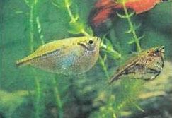 Из африканских харациновидных в аквариумах чаще всего содержат представителей двух семейств – алестовых (Alestidae) и цитариновых (Citharinidae). Эти рыбы населяют бассейны рек Нигер, Нил, Конго, Замбези. Семейство алестовых представлено в любительских водоемах, главным образом пятью родами: Arnoldichthys, Brycinus, Hemigrammopetersius, Micralestes, Phenacogrammus. Брачное поведение алестовых стимулируют, помимо указанных выше факторов, ярким солнечным или искусственным освещением и иногда добавлением поваренной соли до 0,5–1,5 г/л. Учитывая относительно крупный размер рыб (8–16 см), аквариум для нереста лучше брать побольше (100 литров и более). Семейство цитариновых можно условно разделить на две группы, в одной из которых находятся мелкие рыбки родов Nannaethiops, Neolebias, а в другой – сравнительно крупные (до 30 см) – Distichodus, Paradistichodus. Наннэтиопсы и неолебиасы легко разводятся в аквариумах, как и другие харациновидные, а вот размножение растительноядных дистиходов пока еще недостаточно изучено.