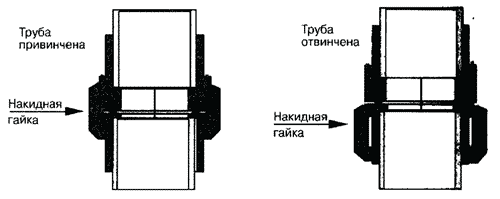 Приведенный выше шаровой кран снабжен двухсторонней или односторонней винтовой резьбой. Эта резьба служит для того, чтобы шар входил в стержень вентиля. Не всегда шар надежно перекрывает трубопровод. Может произойти так, что шарик выдавится из своего «места», и освободит движение воды. Хотя разработаны односторонне отвинчивающиеся вентили, ни в коем случае нельзя полагаться на это. Тем не менее, для того чтобы можно было надежно перекрыть трубу, перед важными узлами вместо шарового крана следует устанавливать вентиль с винтовой резьбой. Вентиль состоит из двух резьбовых частей, которые с помощью накидной гайки связываются друг с другом. Между резьбовыми частями расположена прокладка, которая уплотняет обе части резьбы так, что во время использования не происходит разгерметизации. Рисунок на стр. 229 показывает типичный способ присоединения трубопровода к насосу.